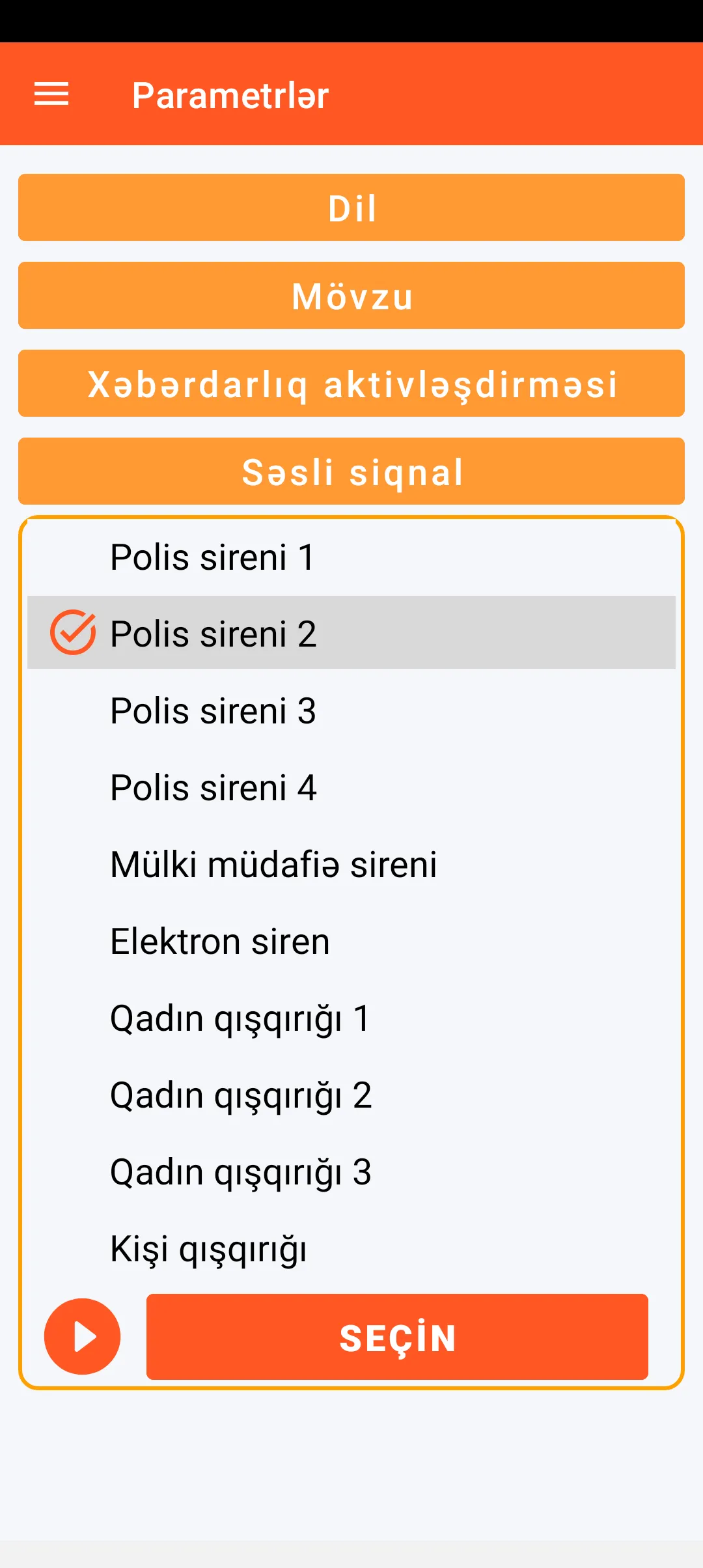 Səs siqnalının seçiminə gəldikdə, istifadənizdə 6 siren yazısı və 4 insan qışqırığı yazısı var.
