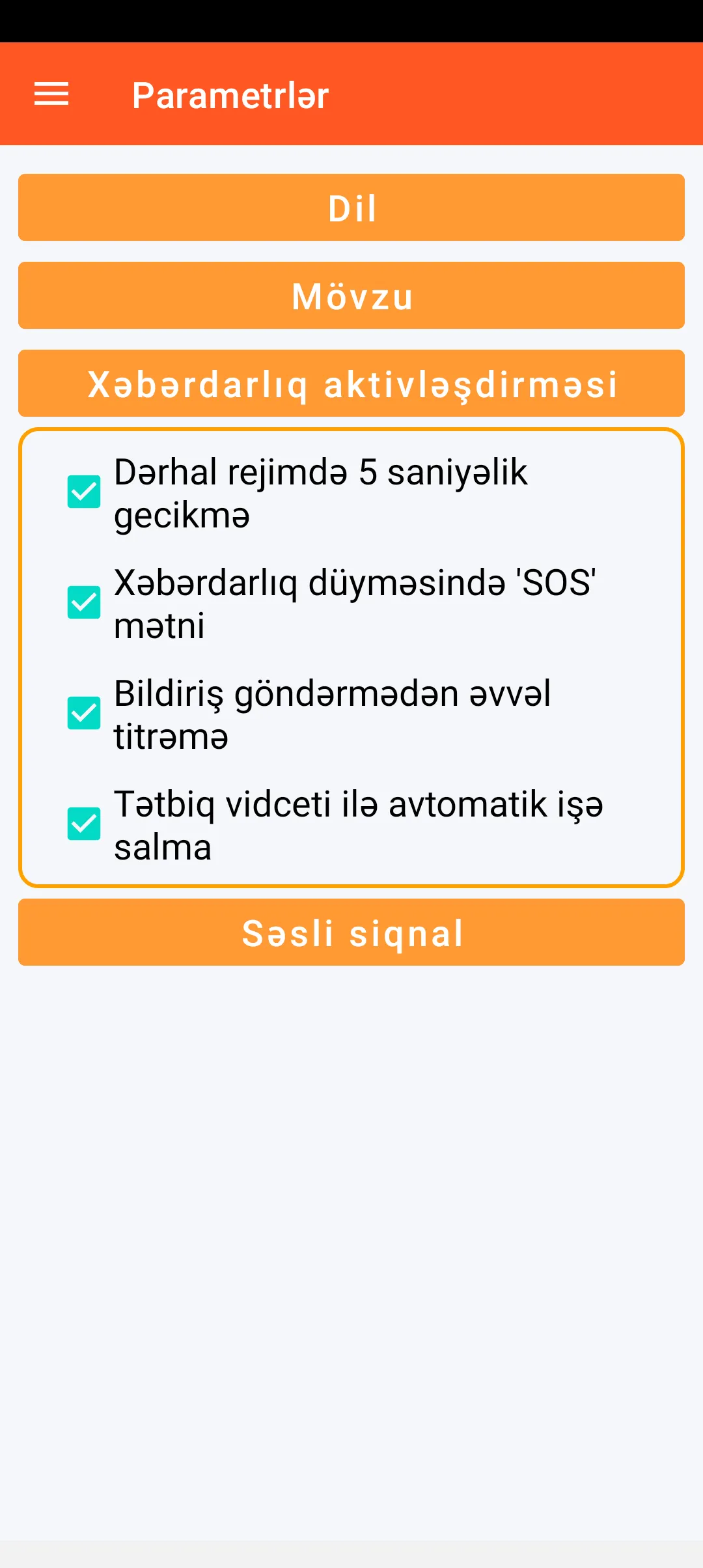Dərhal rejim xəbərdarlığın işə salındıqdan dərhal sonra (ana ekranın SOS düyməsi) göndərilməsinə imkan verir.
