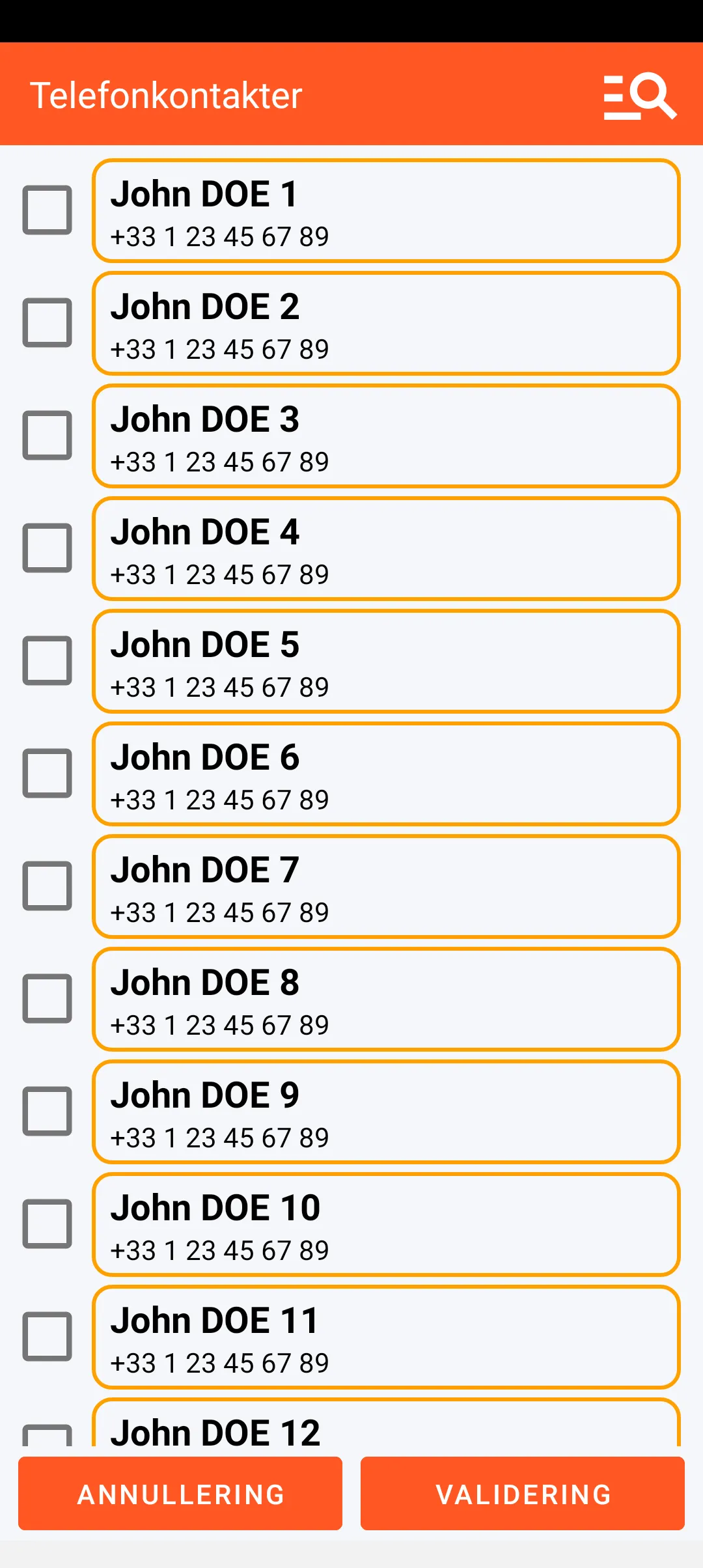 – simulering af et indgående telefonopkald