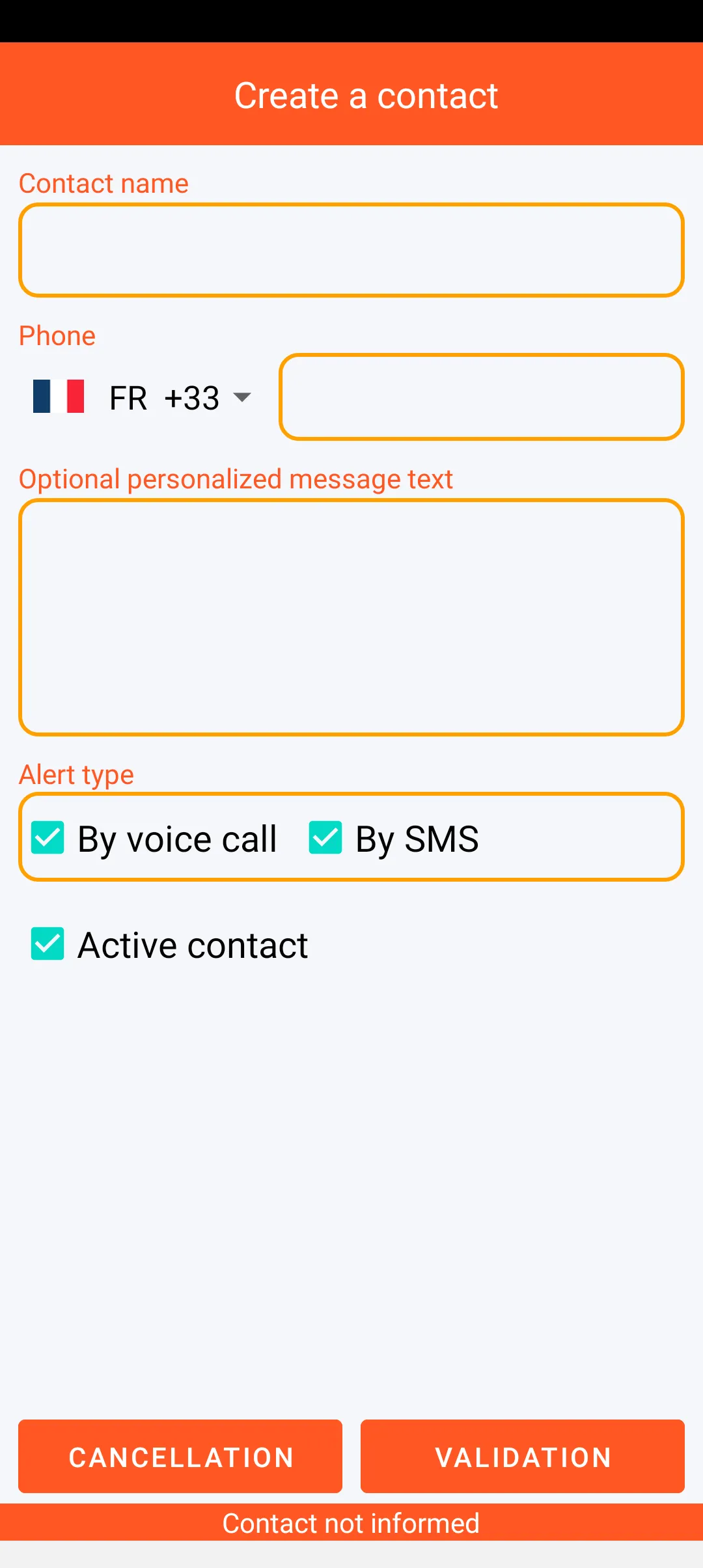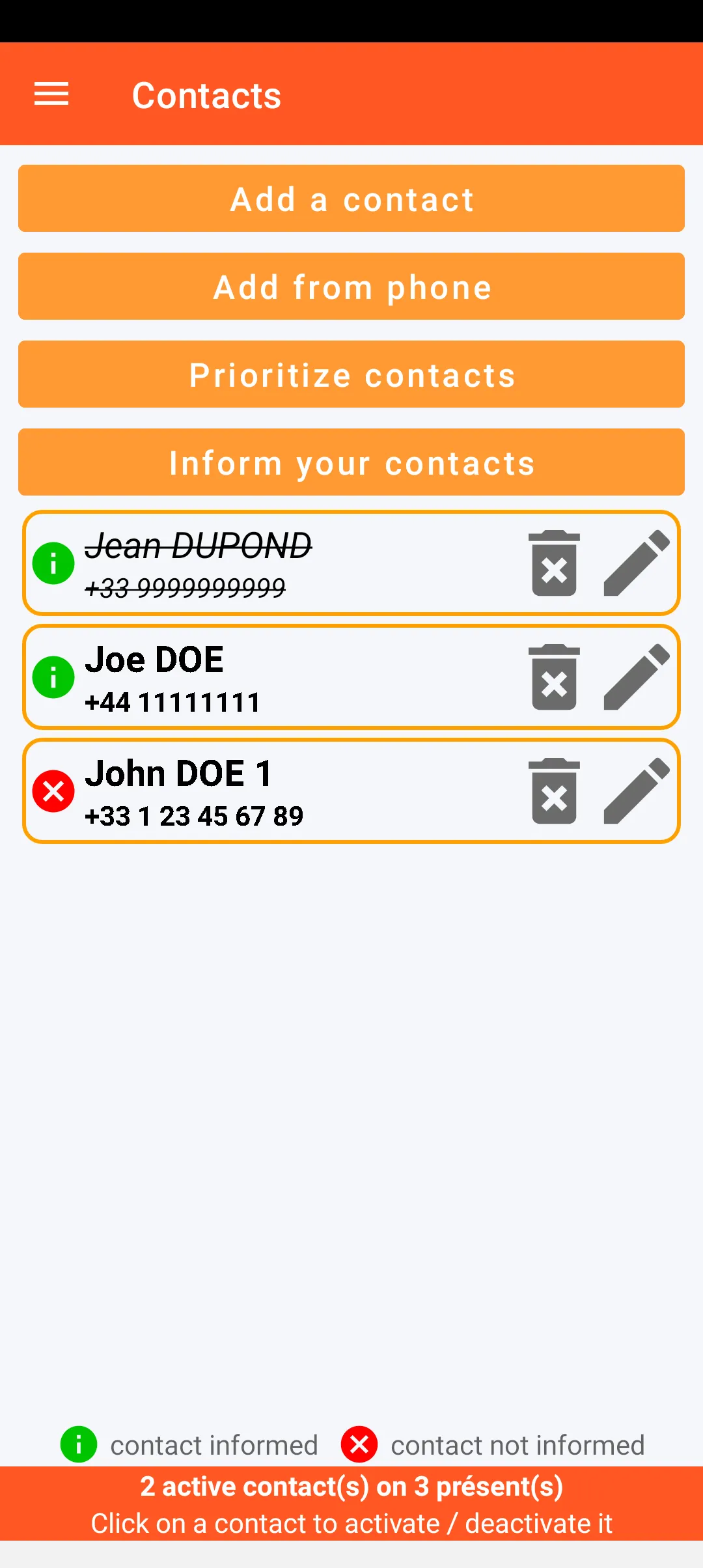 You can define the trusted individuals to be alerted from the contacts on the smartphone. These individuals can be prioritised and informed that they may receive an alert message. Each contact can be temporarily deactivated.