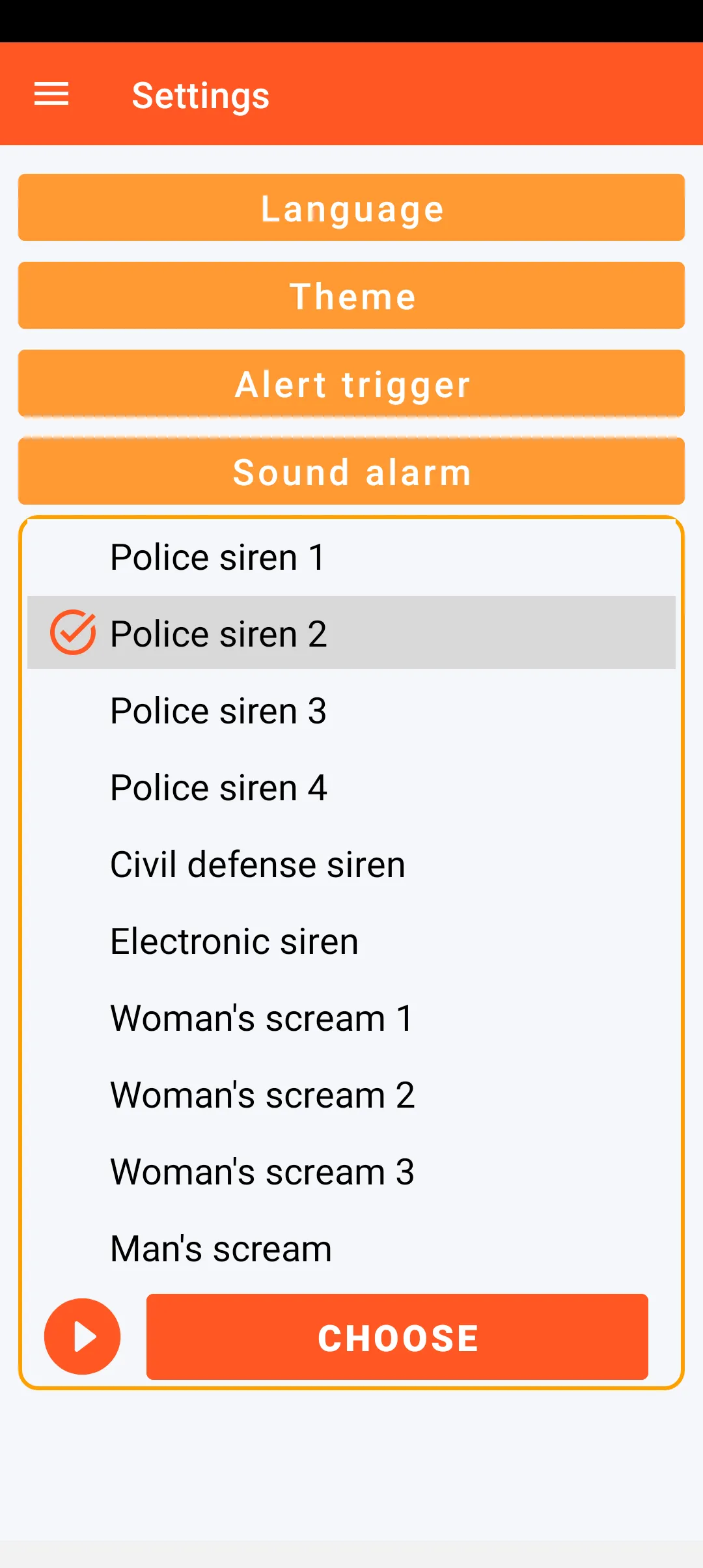 Regarding the choice of sound alarm, you have 6 siren recordings and 4 human scream recordings available.