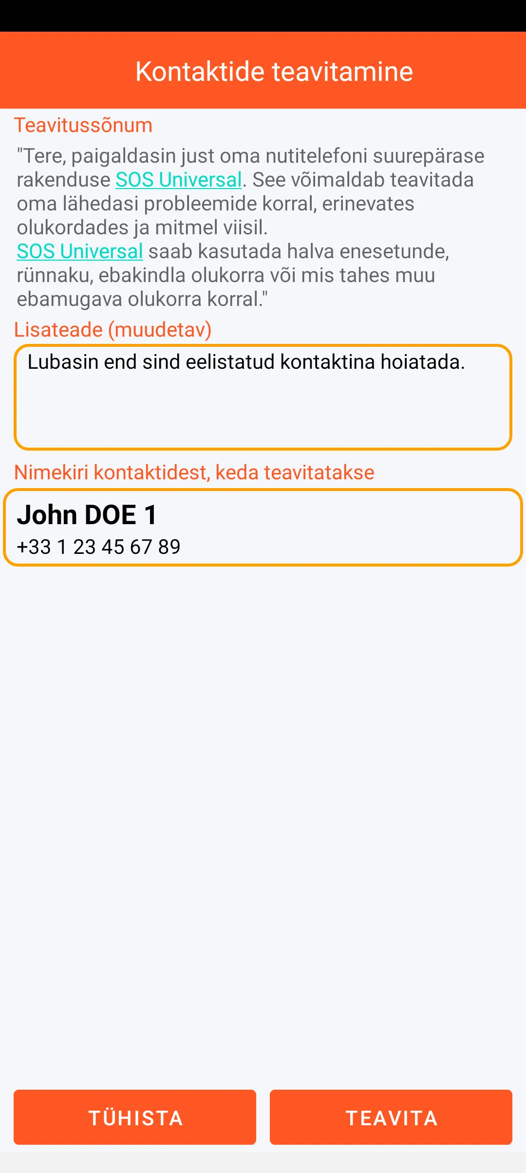 Saate määrata usaldusväärsed isikud, keda nutitelefoni kontaktide hulgast hoiatada. Need isikud saab prioriseerida ja teavitada, et nad võivad saada hoiatussõnumi. Iga kontakti saab ajutiselt deaktiveerida.