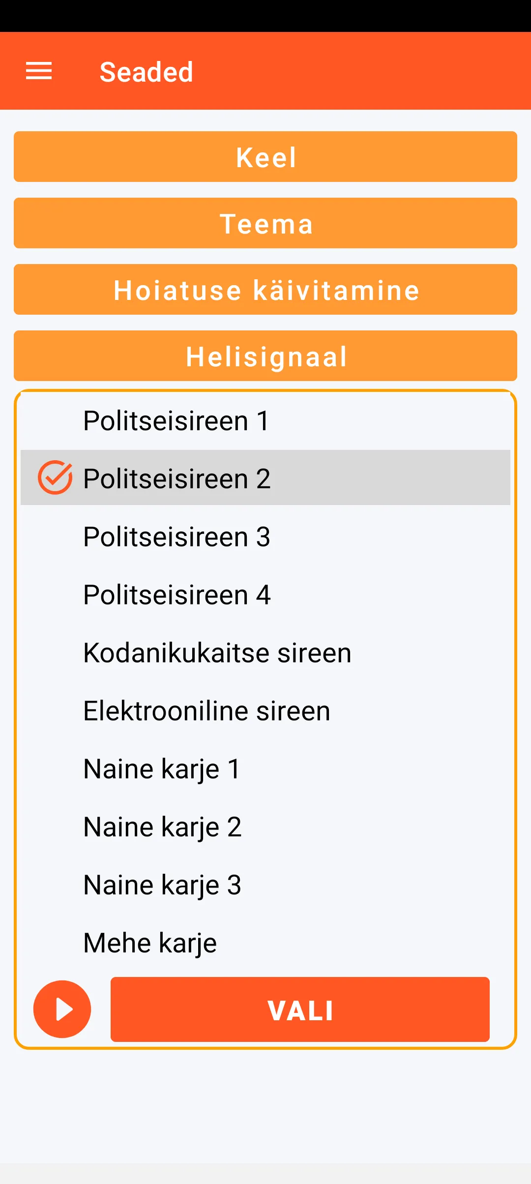 Helisignaali valiku osas on teil kasutada 6 sireeni salvestist ja 4 inimese karje salvestist.