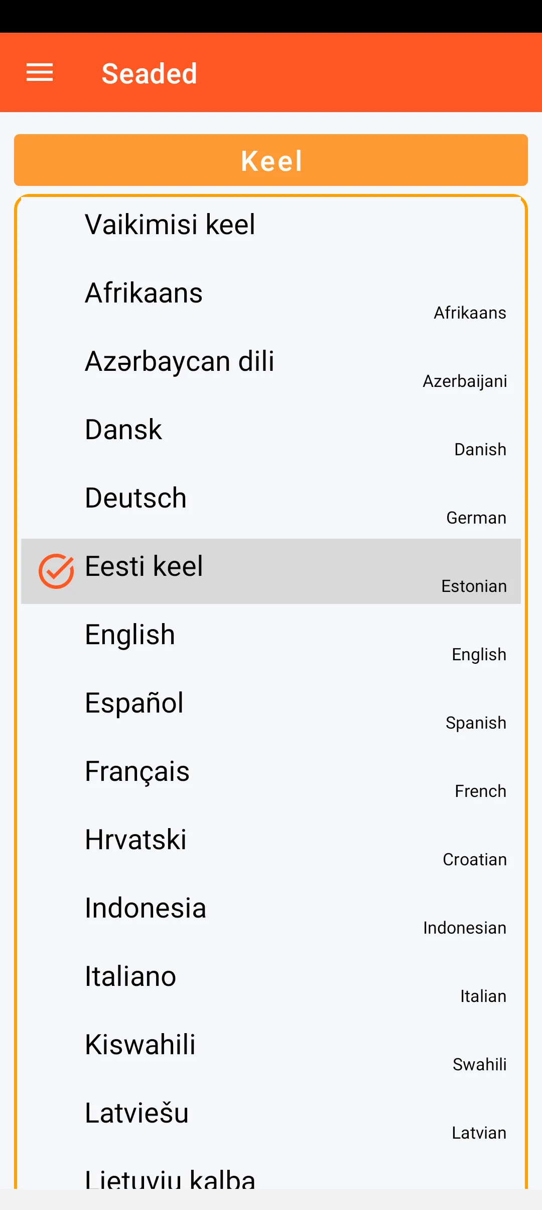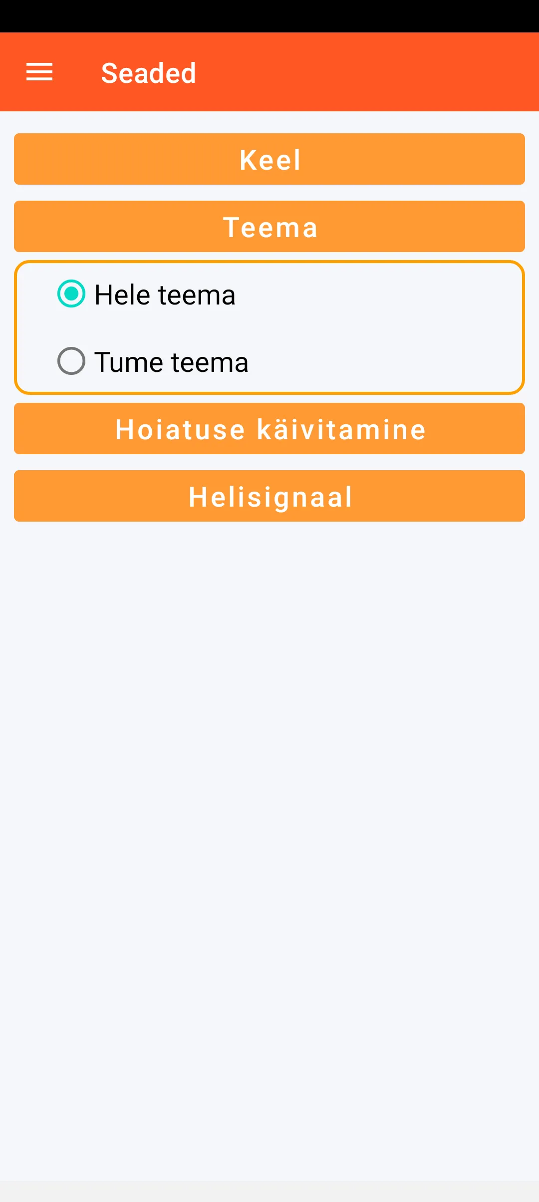 SOS Universali keelt (saadaval on 54 keelt) ja visuaalset teemat (hele või tume) saab seadistada.