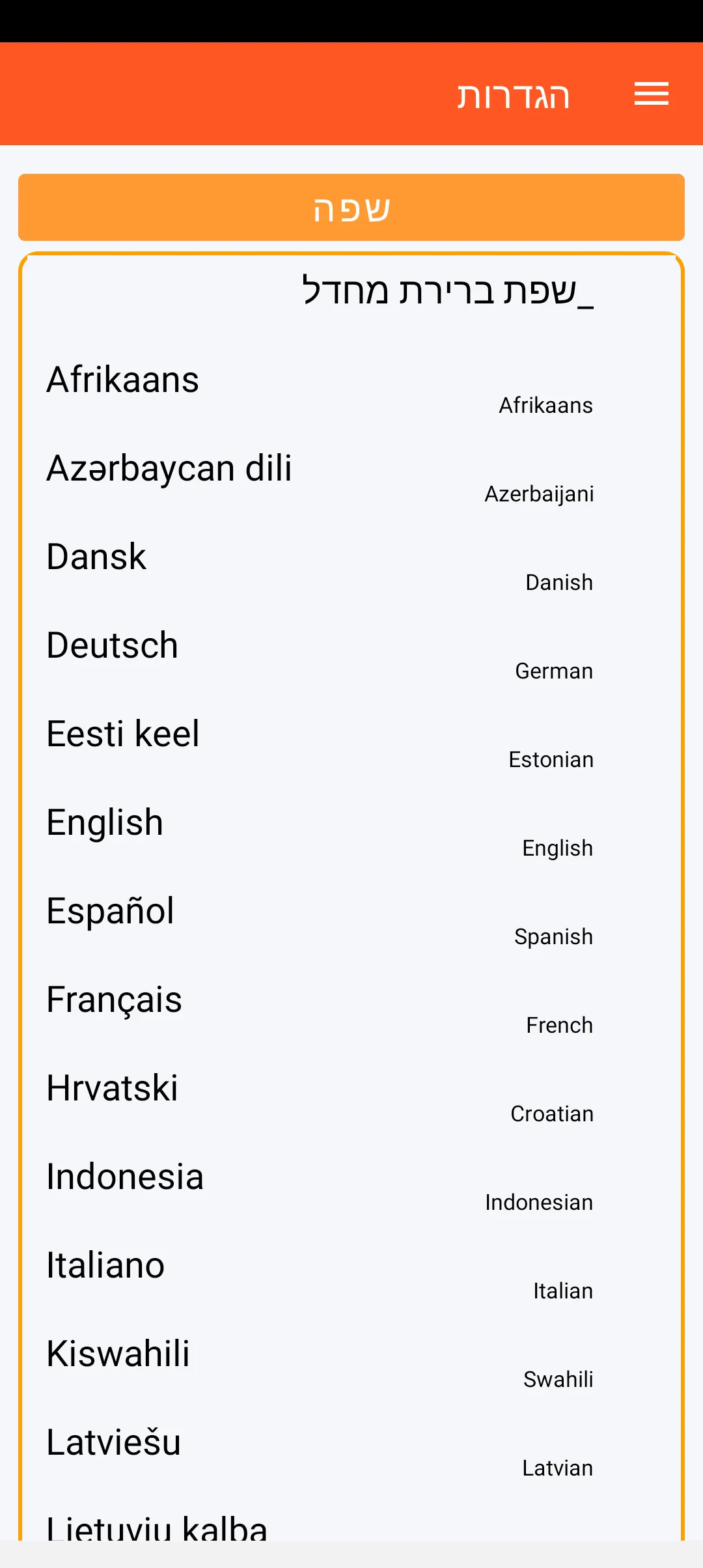 ניתן להגדיר את שפת SOS Universal (54 שפות זמינות) וכן את העיצוב הוויזואלי (בהיר או כהה).