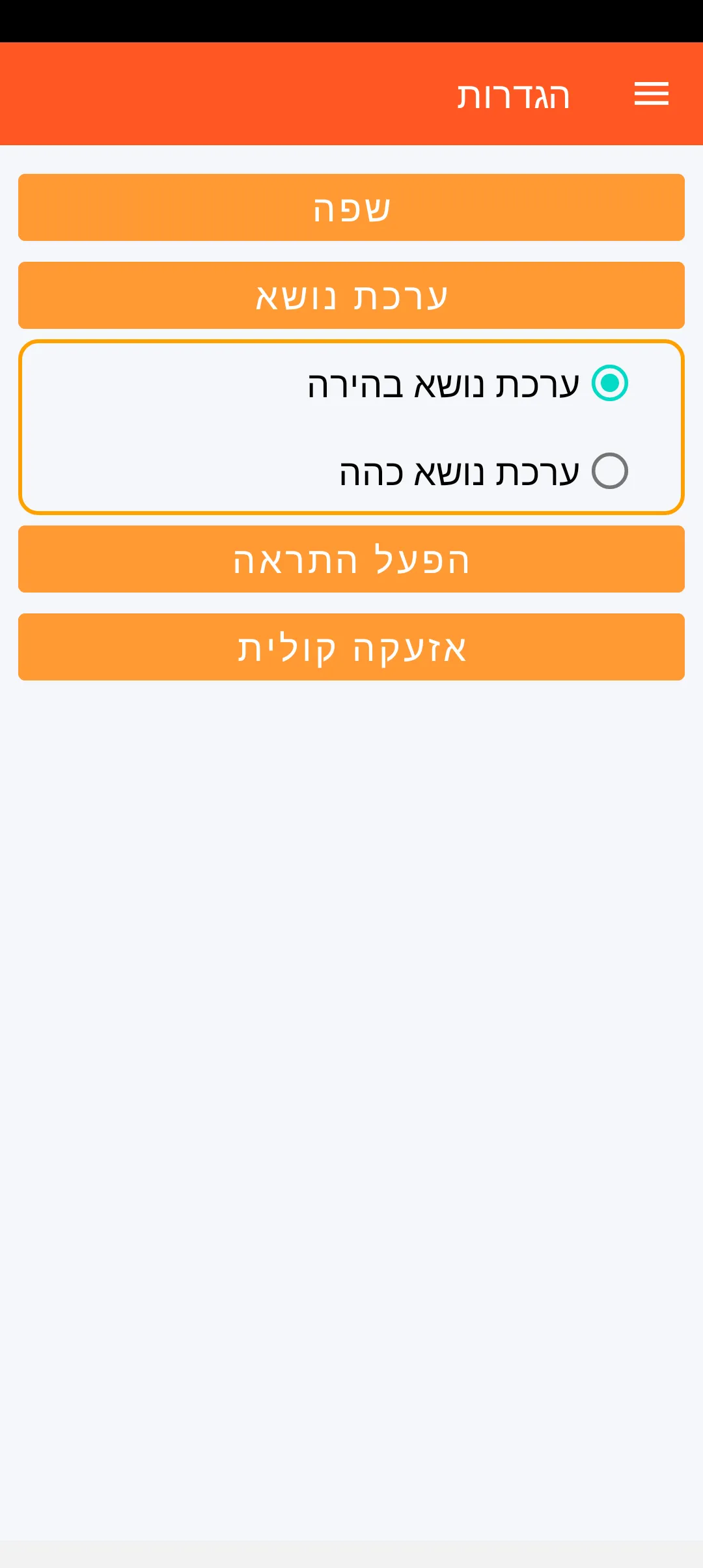 לגבי בחירת האזעקה הקולית, עומדים לרשותך 6 הקלטות של סירנה ו-4 הקלטות של צעקות אנושיות.