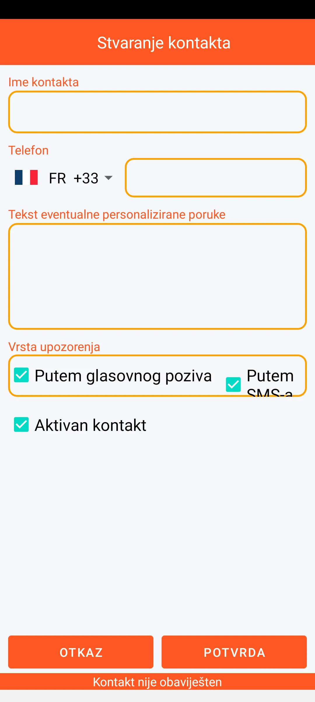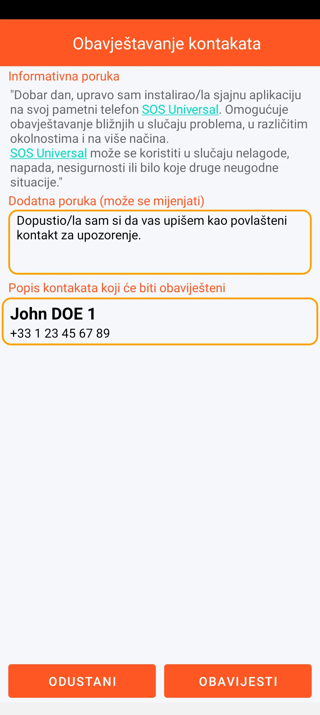 Možete definirati osobe od povjerenja koje ćete upozoriti iz kontakata prisutnih na pametnom telefonu. Te osobe mogu biti prioritizirane i obaviještene da će moći primiti poruku upozorenja. Svaki kontakt može biti privremeno deaktiviran.