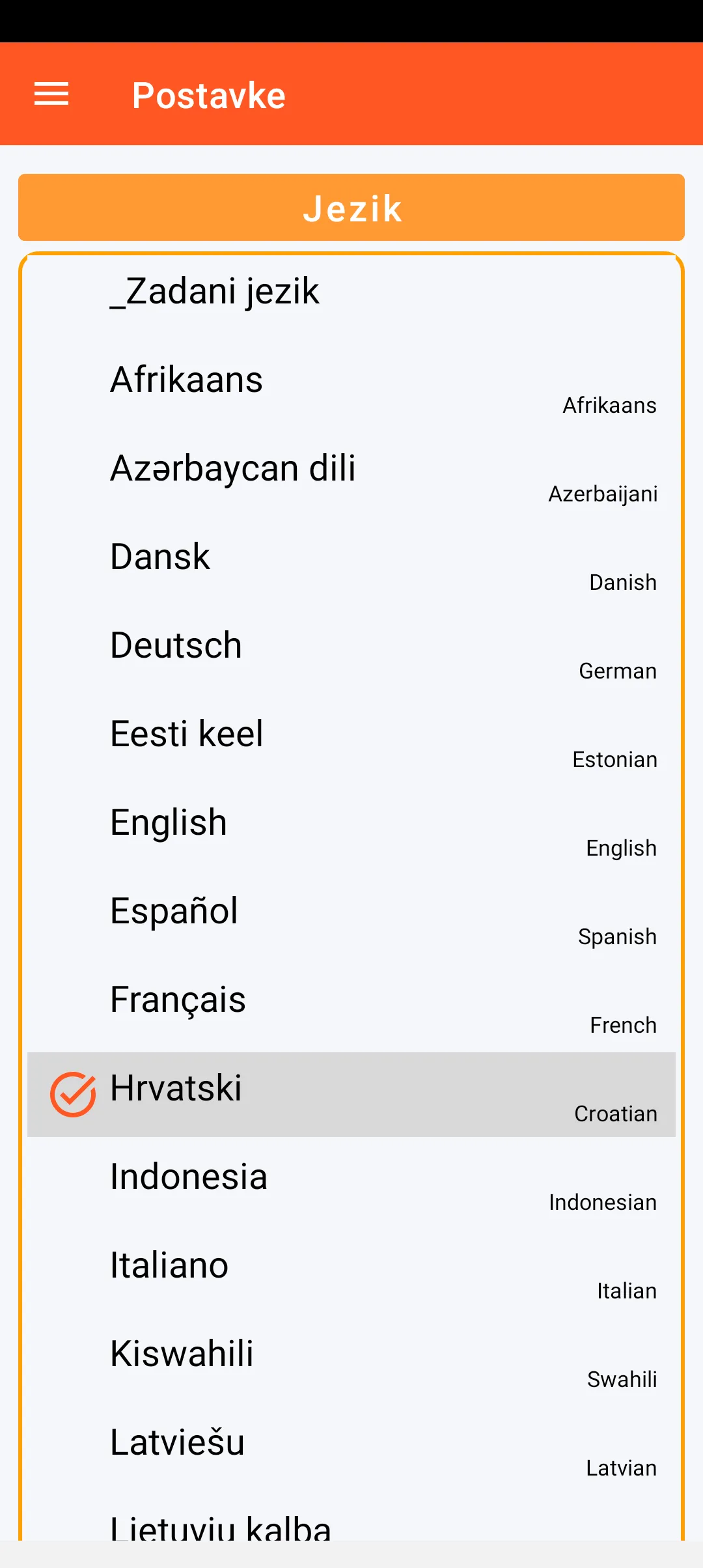 Jezik SOS Universal (dostupna su 54 jezika) i vizualna tema (svijetla ili tamna) mogu se konfigurirati.