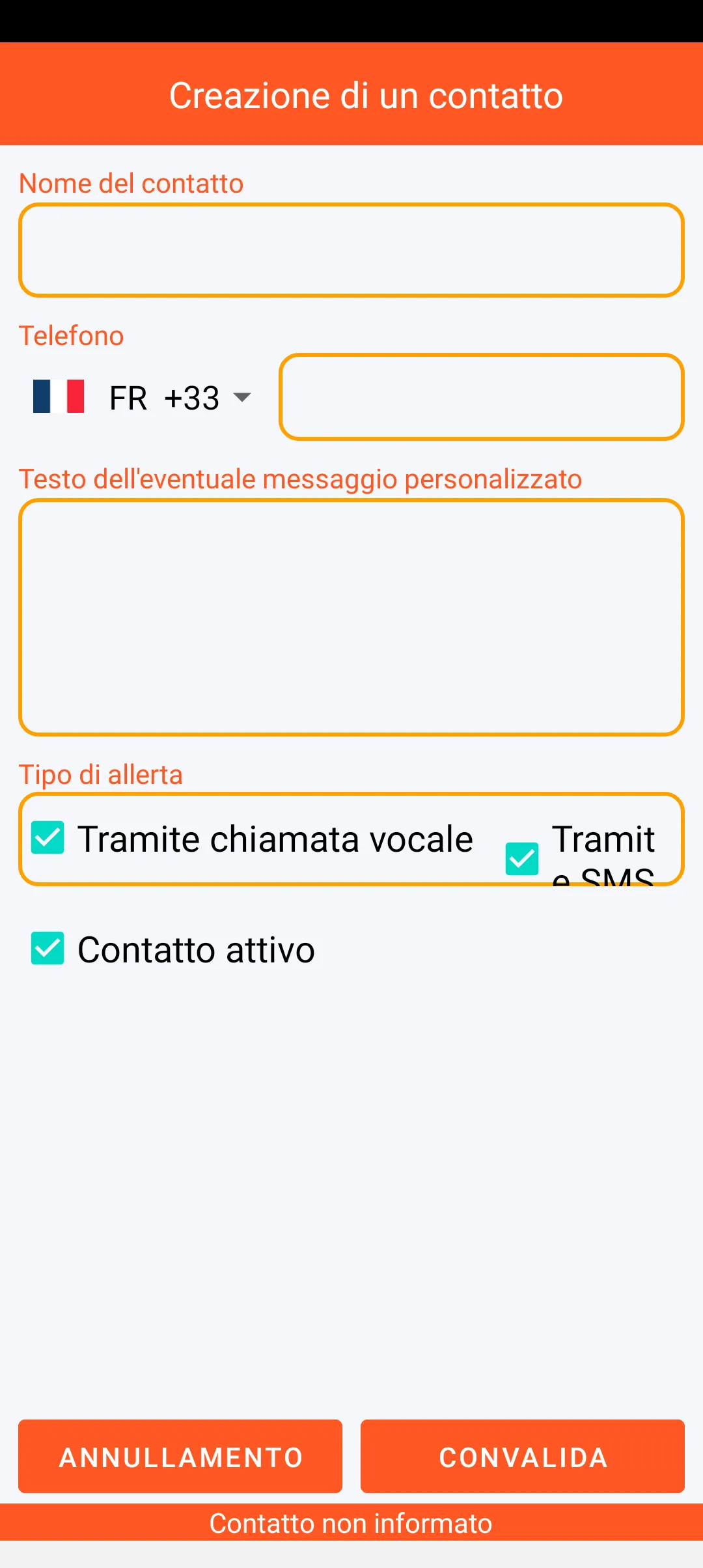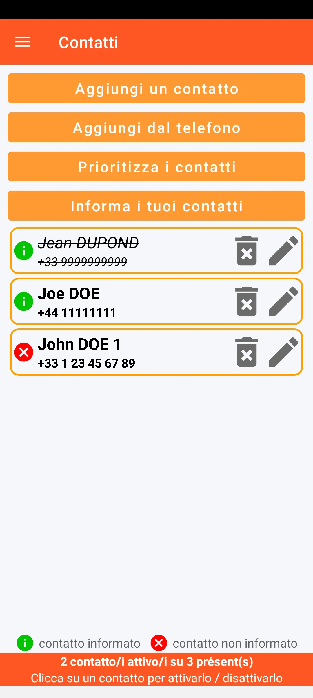 È possibile definire le persone di fiducia da avvisare a partire dai contatti presenti sullo smartphone. Queste persone possono essere prioritarie e informate che potranno ricevere un messaggio di avviso. Ciascuno dei contatti può essere temporaneamente disattivato.