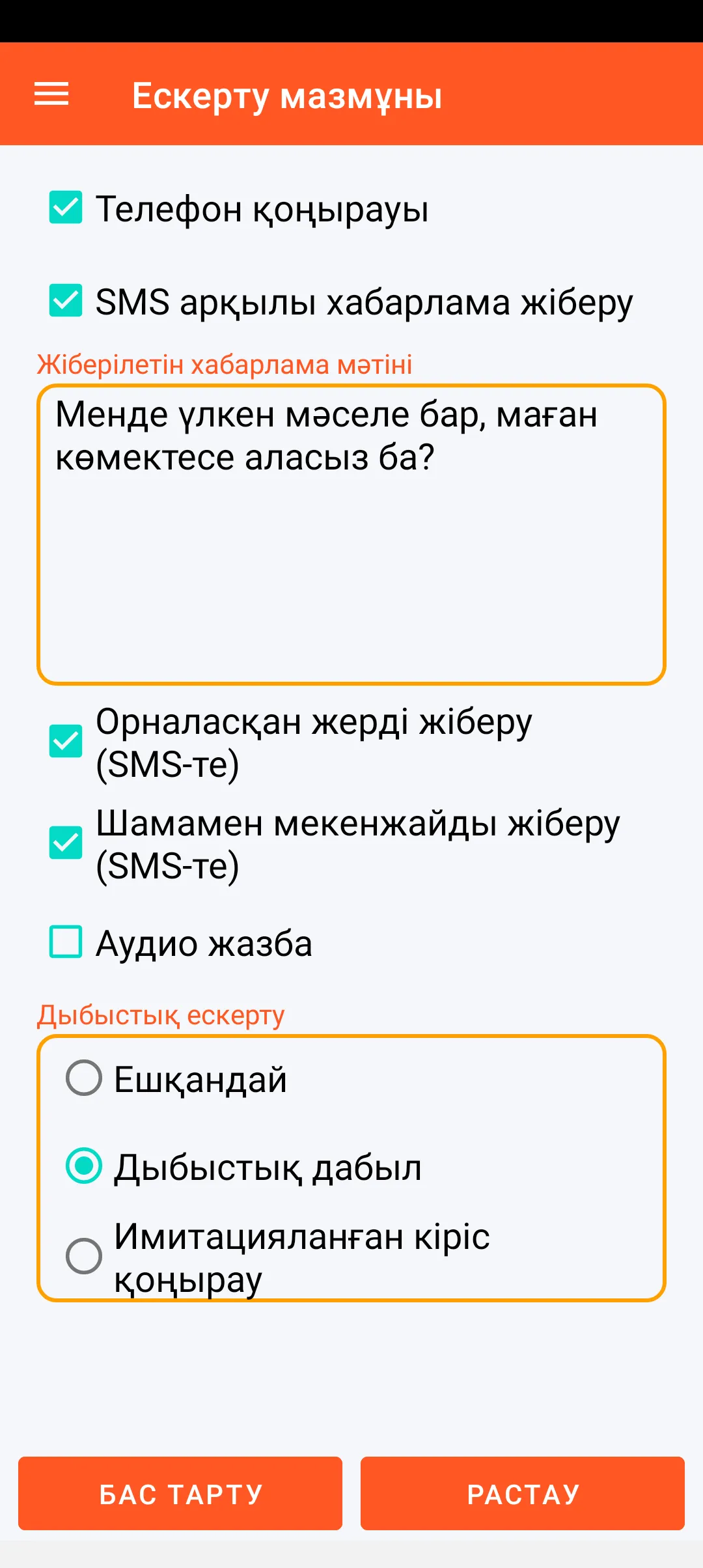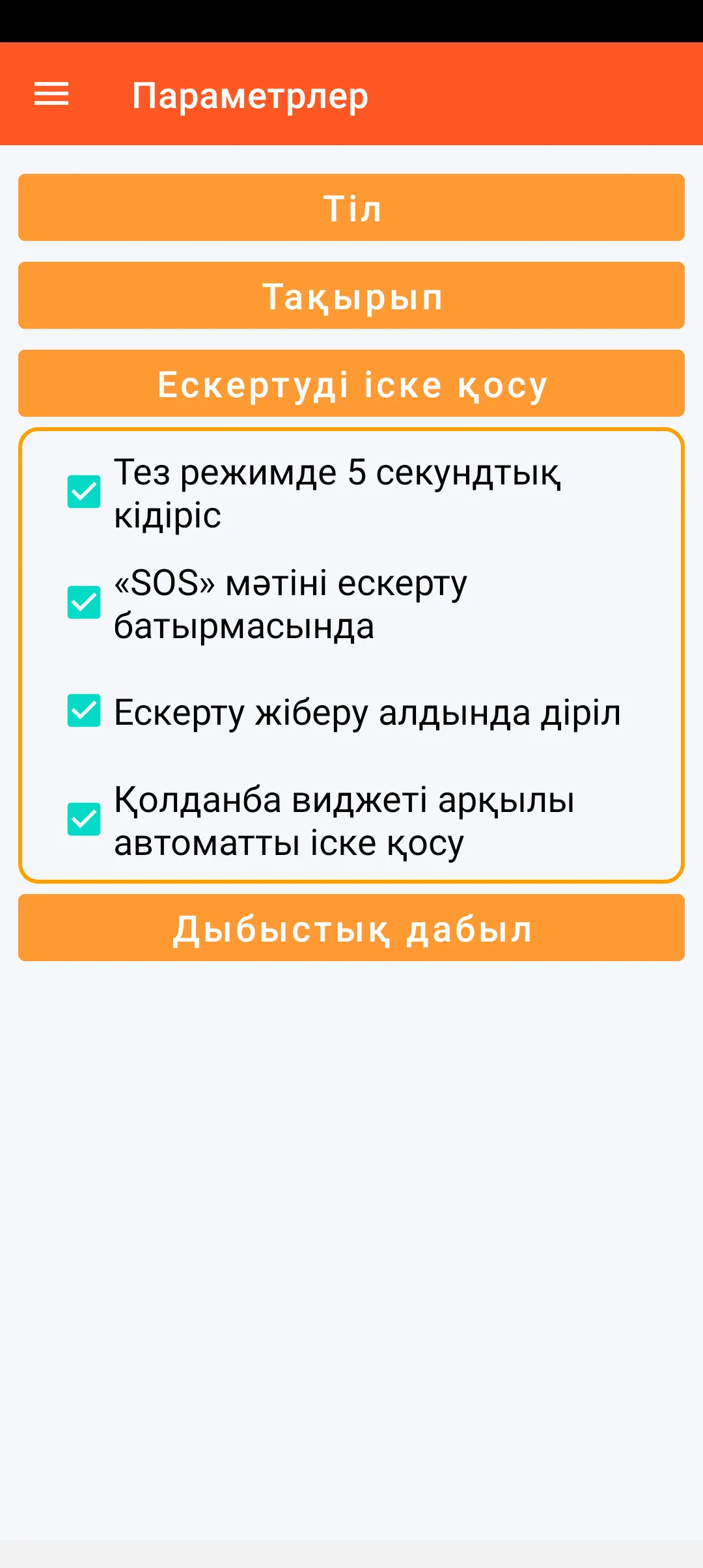 Тез режим ескерту іске қосылғаннан кейін бірден (үй экранындағы SOS батырмасы) оның жіберілуіне мүмкіндік береді.