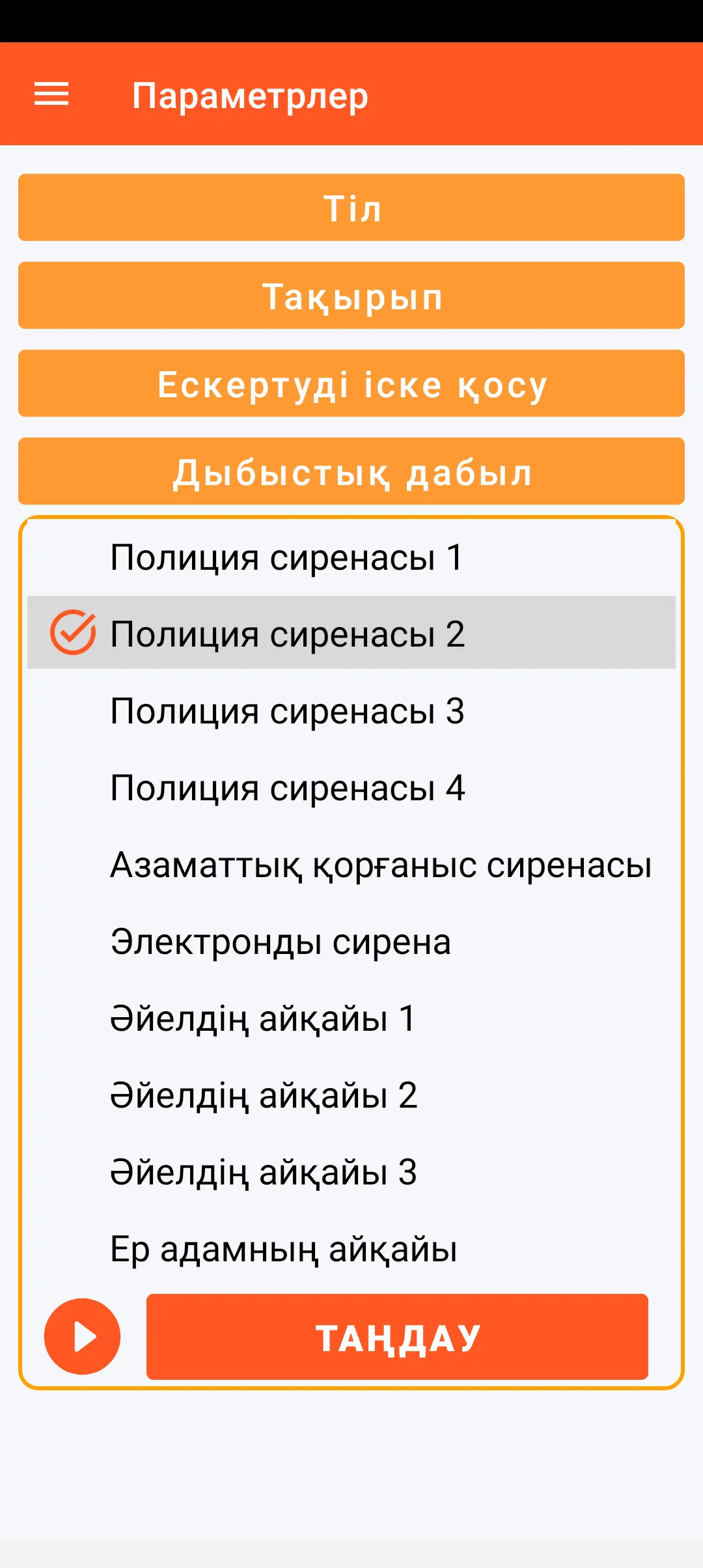 Дыбыстық дабылды таңдауға қатысты, сізде 6 сирена жазбасы және 4 адам айқайы жазбасы бар.