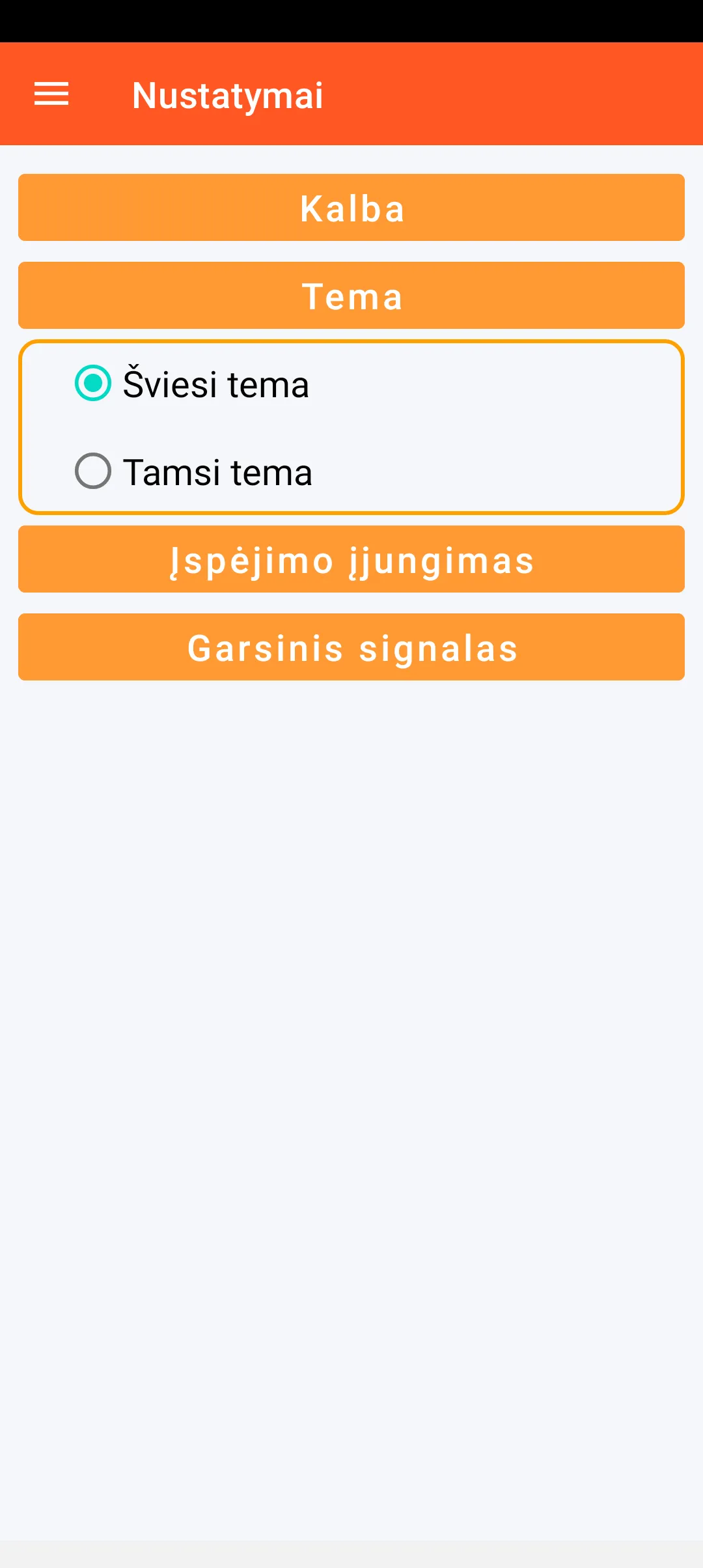 Tiesioginis režimas leidžia išsiųsti įspėjimą iškart po jo įjungimo (SOS mygtukas pagrindiniame ekrane).