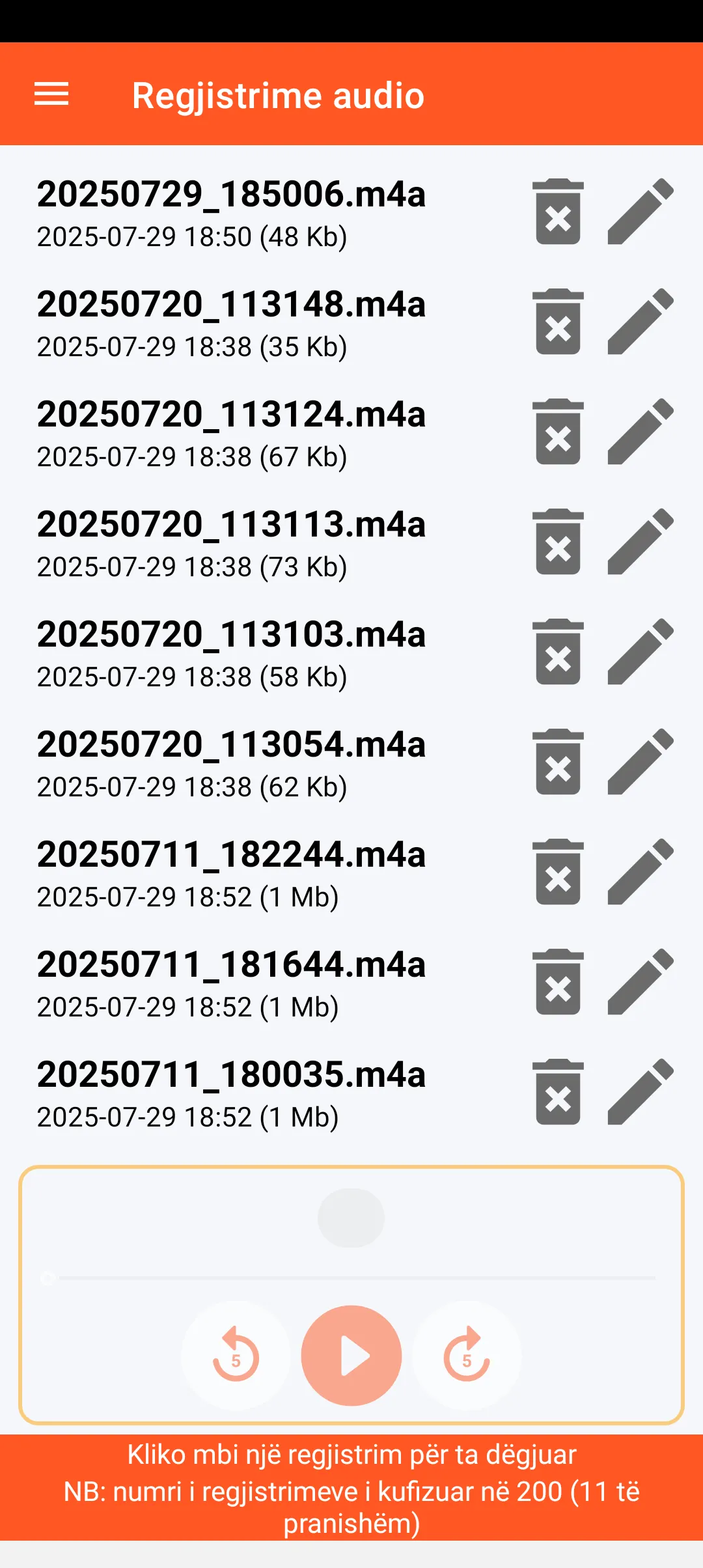 Mund të ruani deri në 200 regjistrime audio që ruhen në direktoriumin e shkarkimeve të smartfonit tuaj. Çdo regjistrim është me vulë kohore dhe mund të dëgjohet, të riemërtohet ose të fshihet.