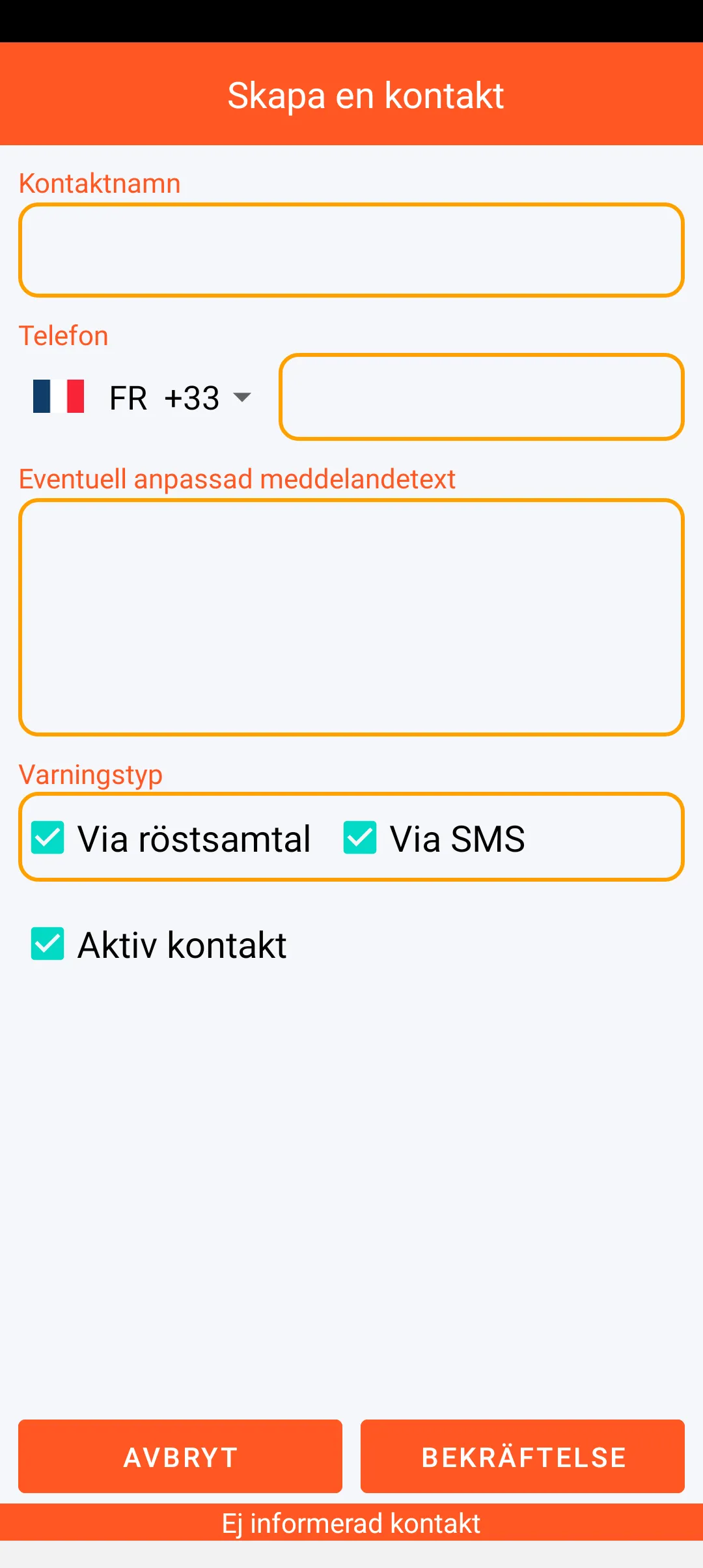 Du kan definiera vilka betrodda personer som ska varnas från de kontakter som finns på smarttelefonen. Dessa personer kan prioriteras och informeras om att de kan komma att ta emot ett varningsmeddelande. Varje kontakt kan tillfälligt inaktiveras.