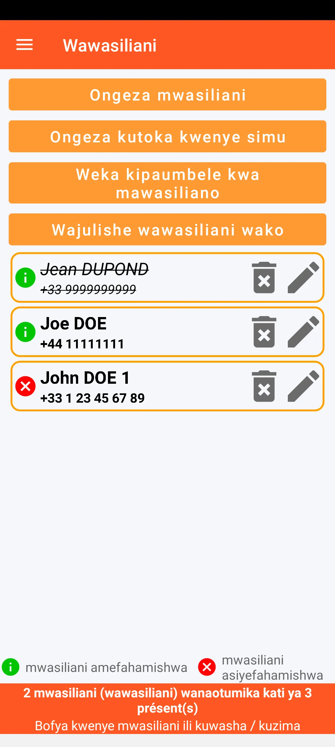 Unaweza kufafanua watu unaowaamini wa kutahadharisha kutoka kwa anwani zilizopo kwenye simu mahiri. Watu hawa wanaweza kuwekwa kipaumbele na kuarifiwa kwamba wanaweza kupokea ujumbe wa tahadhari. Kila mmoja wa anwani anaweza kuzimwa kwa muda.