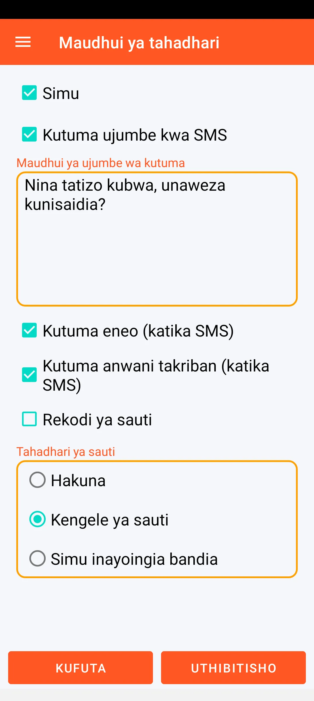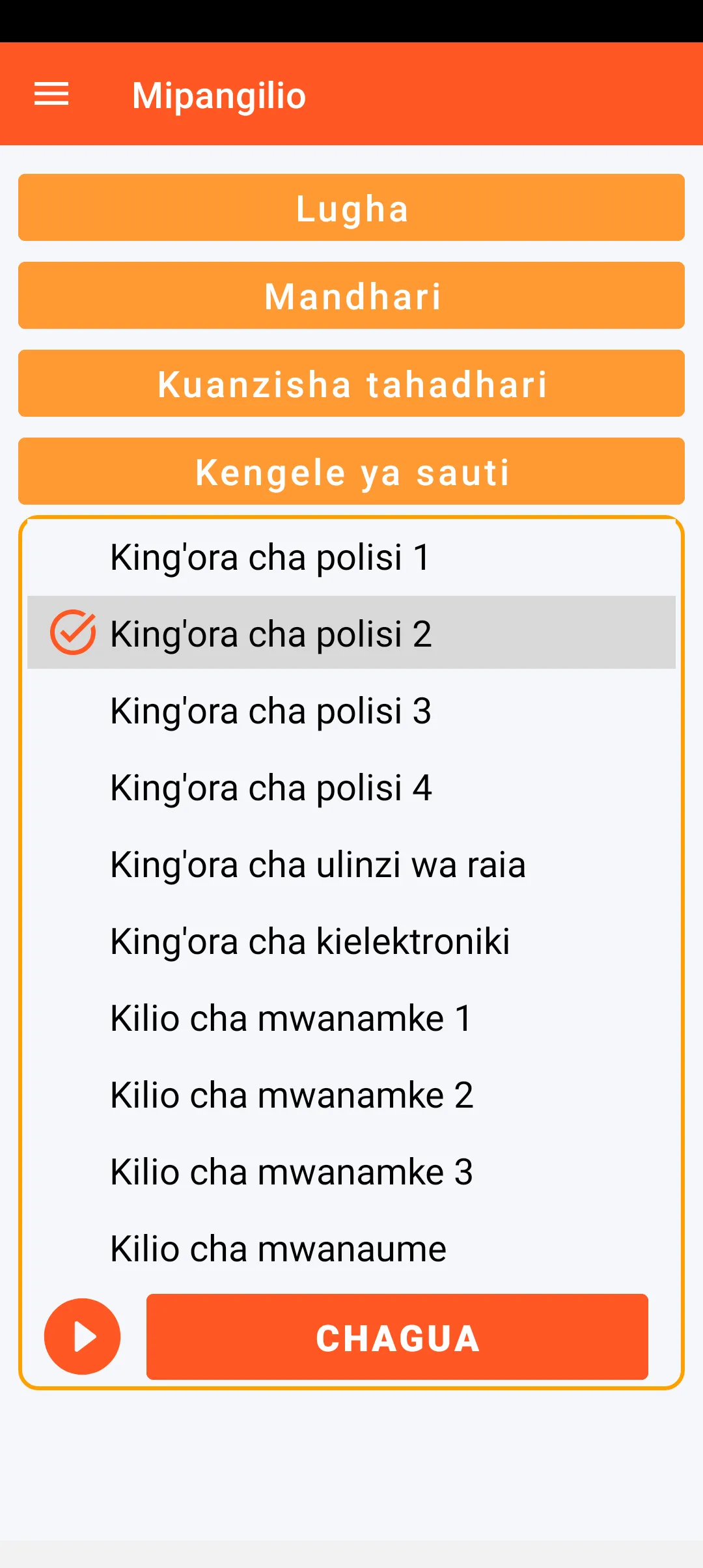 Kuhusu uchaguzi wa kengele ya sauti, una rekodi 6 za king’ora na rekodi 4 za kilio cha binadamu.