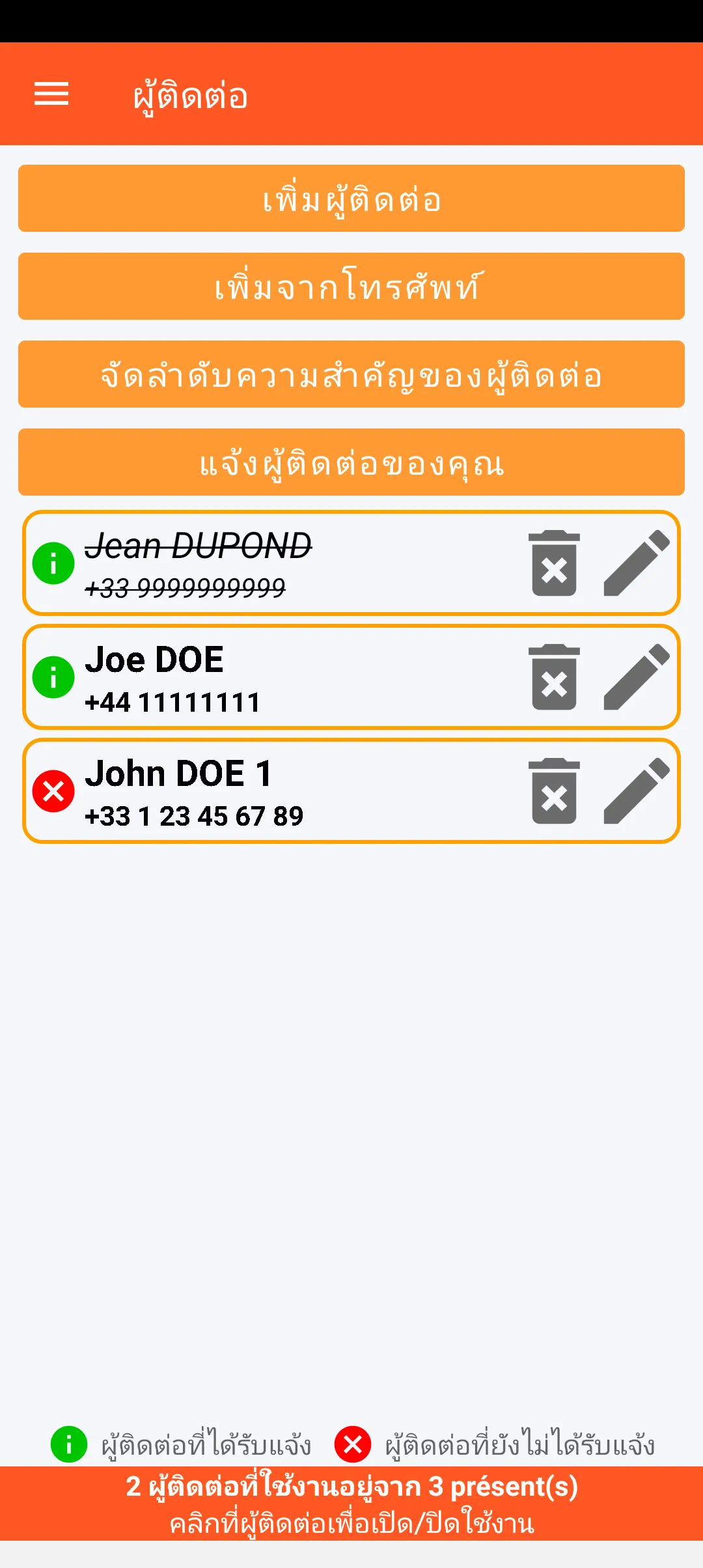 คุณสามารถกำหนดบุคคลที่ไว้วางใจที่จะแจ้งเตือนจากรายชื่อผู้ติดต่อในสมาร์ทโฟนได้ บุคคลเหล่านี้สามารถจัดลำดับความสำคัญและรับการแจ้งเตือนได้ ผู้ติดต่อแต่ละคนสามารถปิดใช้งานชั่วคราวได้