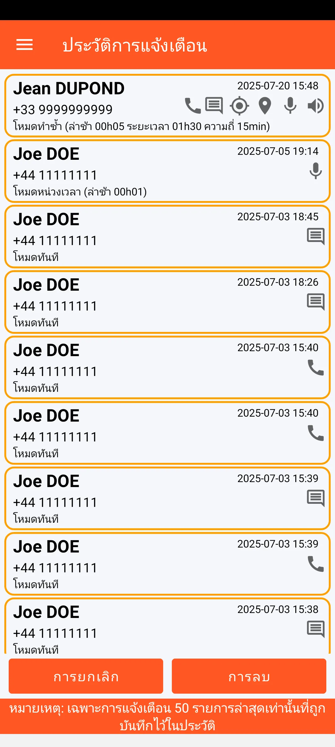 การแจ้งเตือน 50 ครั้งล่าสุดจะถูกบันทึกไว้ในประวัติพร้อมคุณสมบัติทั้งหมด (ชื่อผู้ติดต่อที่ได้รับการแจ้งเตือน วันที่และเวลา รวมถึงเนื้อหาและโหมดการแจ้งเตือน)