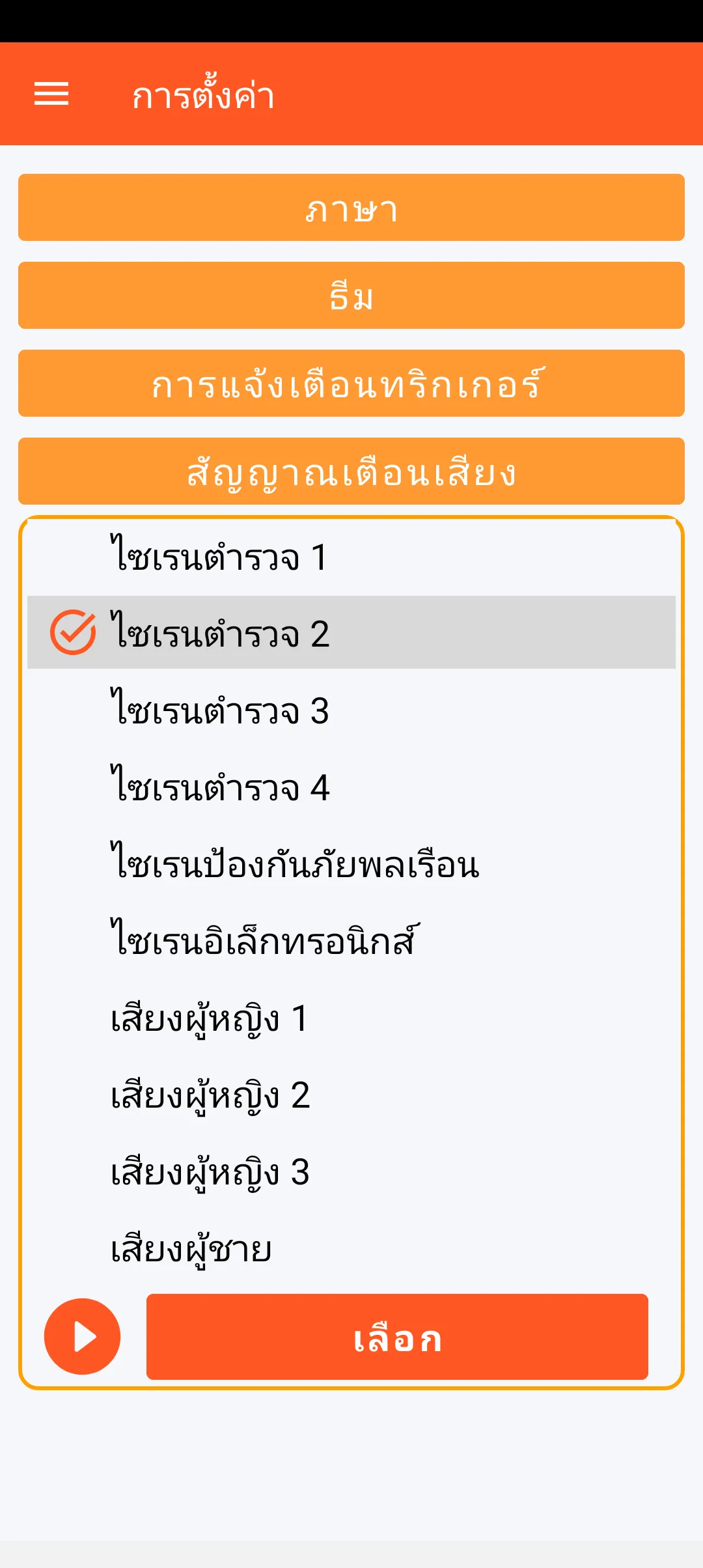 สำหรับการเลือกสัญญาณเตือนเสียง คุณมีเสียงไซเรน 6 แบบและเสียงกรีดร้องของมนุษย์ 4 แบบให้เลือก