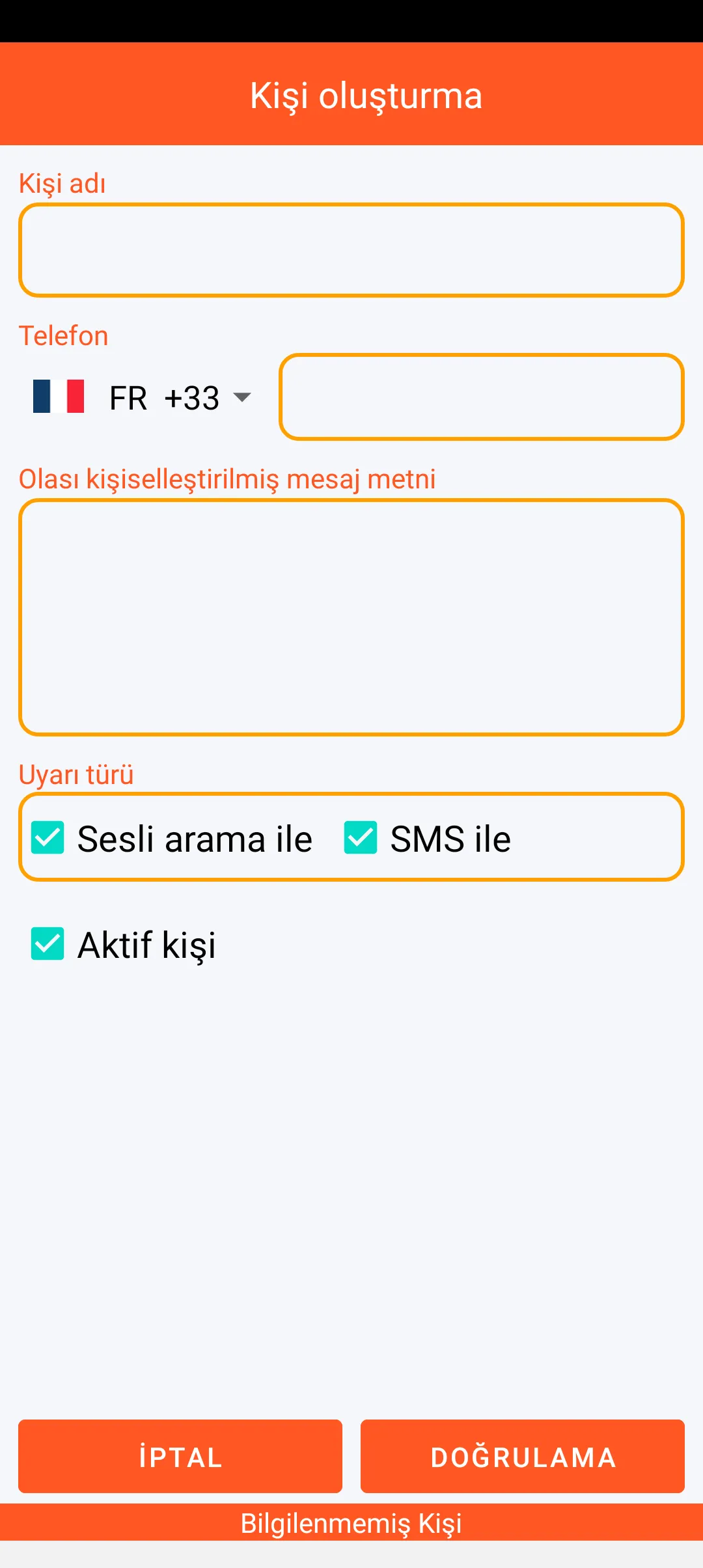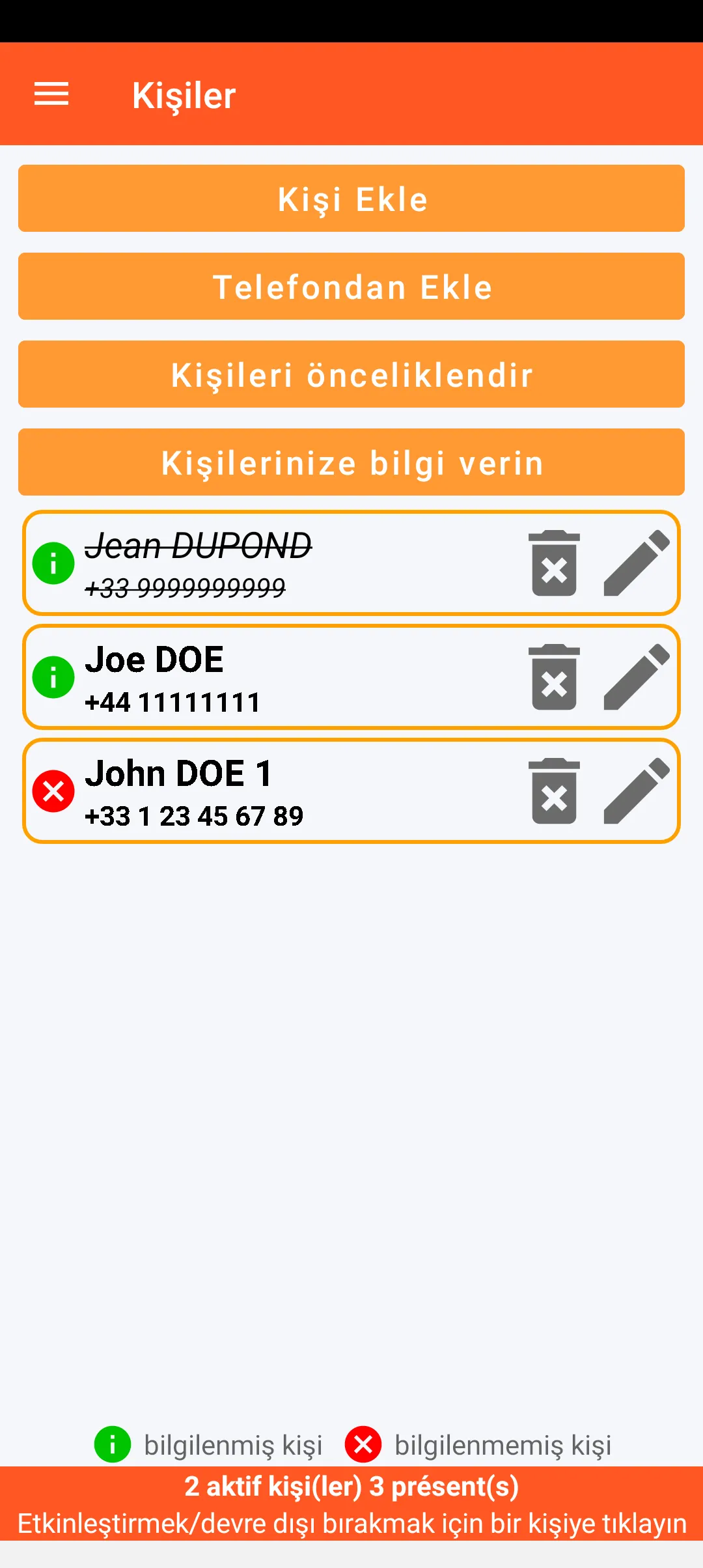 Akıllı telefonda bulunan kişilerden uyarılacak güvenilir kişileri belirleyebilirsiniz. Bu kişiler önceliklendirilebilir ve bir uyarı mesajı alabilecekleri konusunda bilgilendirilebilir. Her bir kişi anlık olarak devre dışı bırakılabilir.