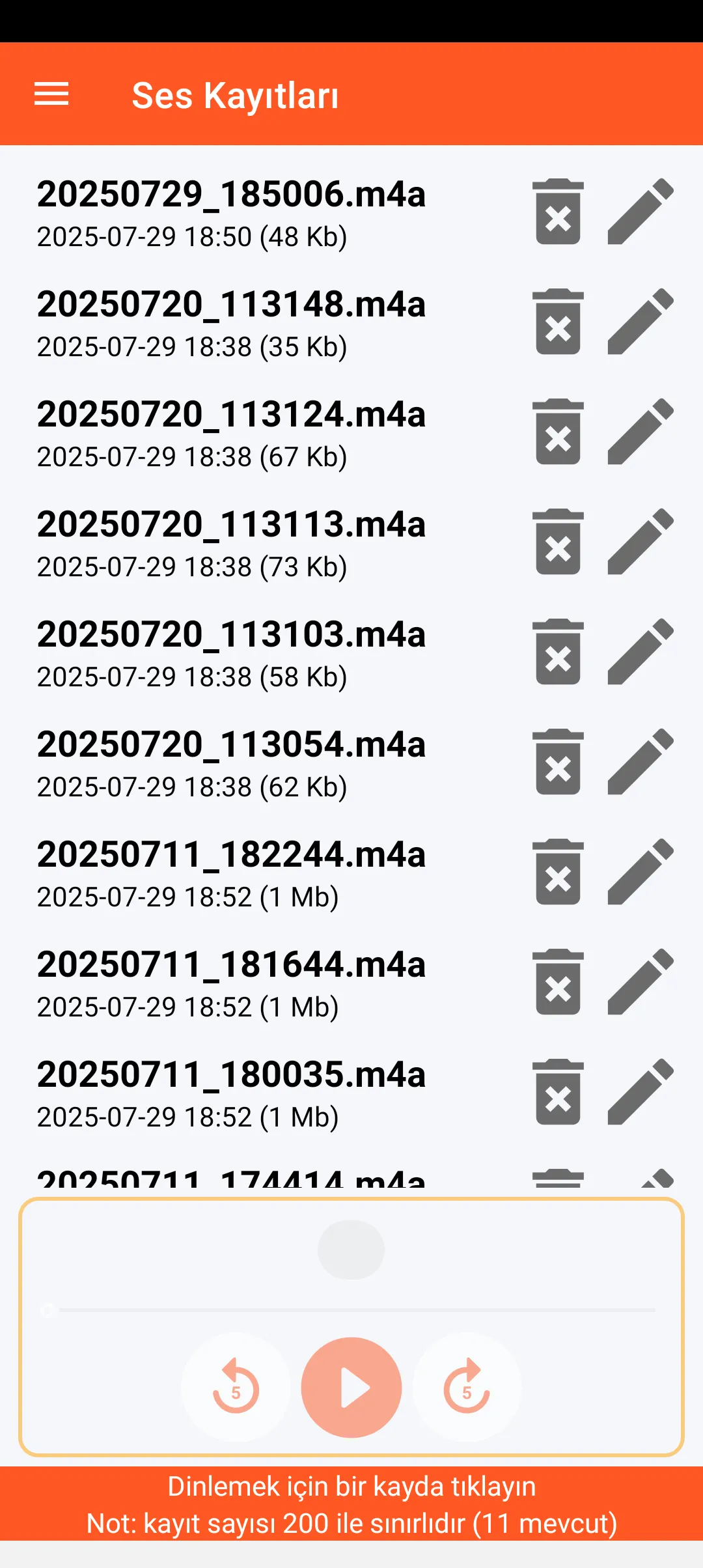 Akıllı telefonunuzun indirme dizininde 200 adede kadar ses kaydı saklayabilirsiniz. Her kayıt zaman damgalıdır ve dinlenebilir, yeniden adlandırılabilir veya silinebilir.
