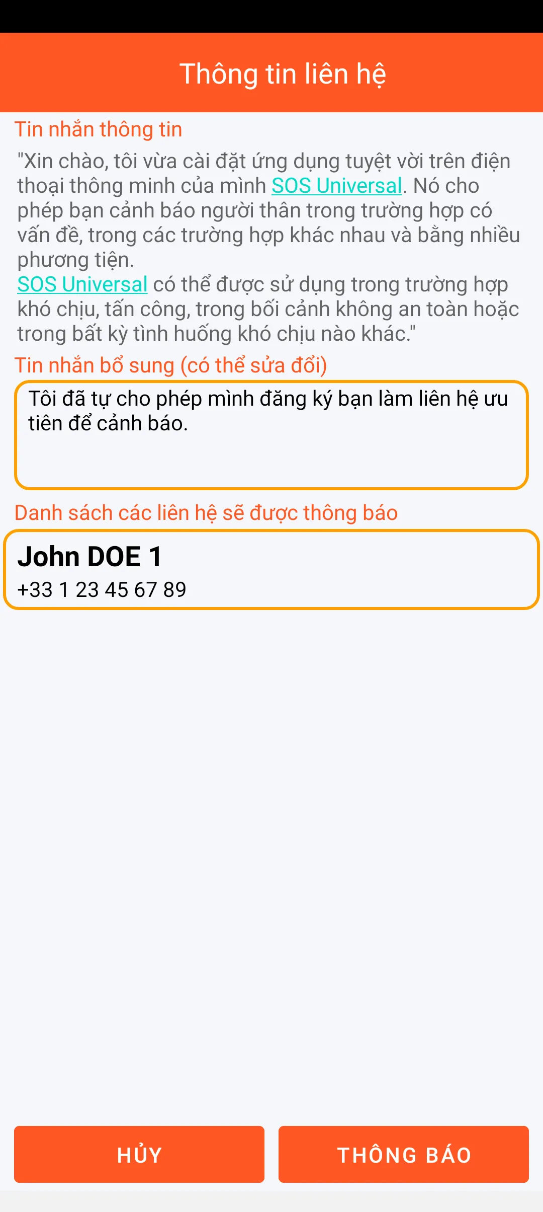 Bạn có thể xác định những người đáng tin cậy để cảnh báo từ các liên hệ có sẵn trên điện thoại thông minh. Những người này có thể được ưu tiên và thông báo rằng họ có thể nhận được tin nhắn cảnh báo. Mỗi liên hệ có thể được tạm thời vô hiệu hóa.