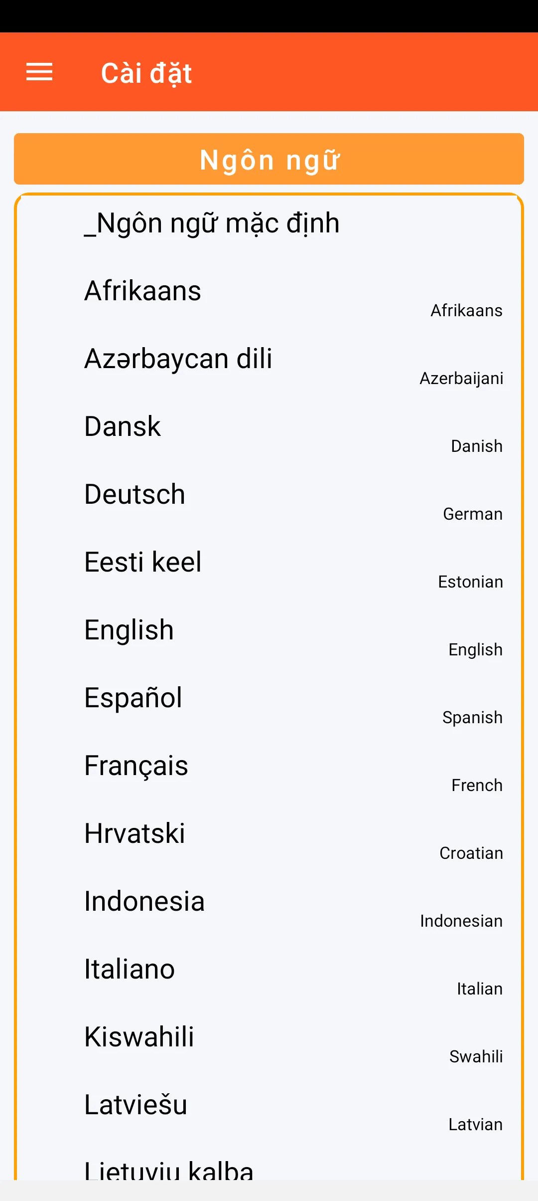 Ngôn ngữ của SOS Universal (có sẵn 54 ngôn ngữ) cũng như chủ đề hình ảnh (sáng hoặc tối) có thể được cấu hình.