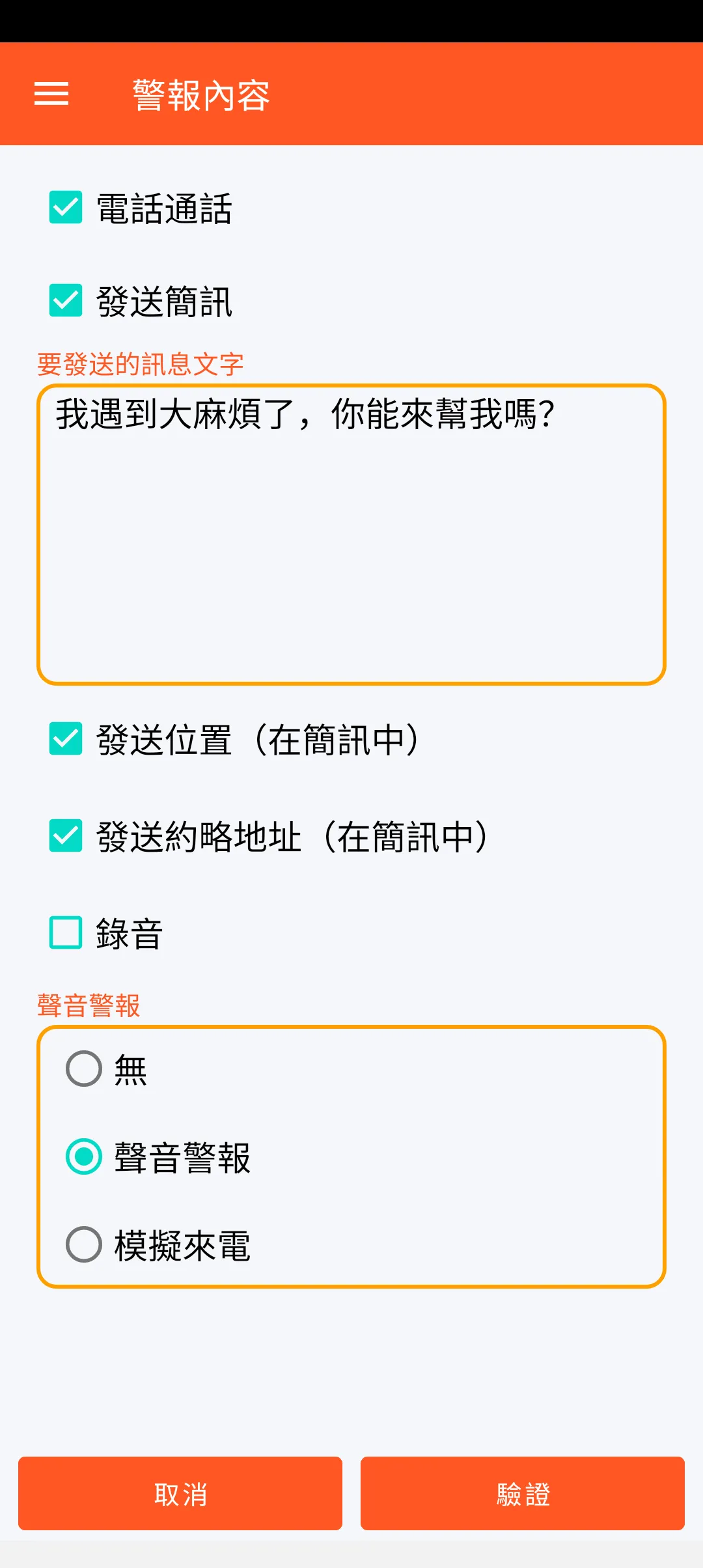 – 聲音警報